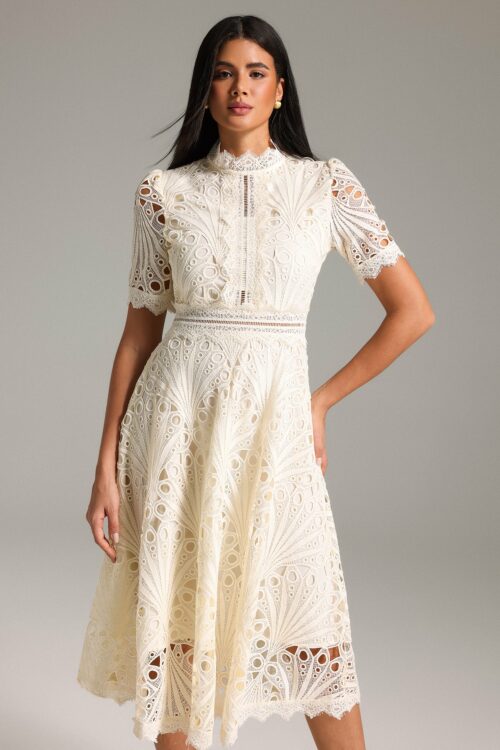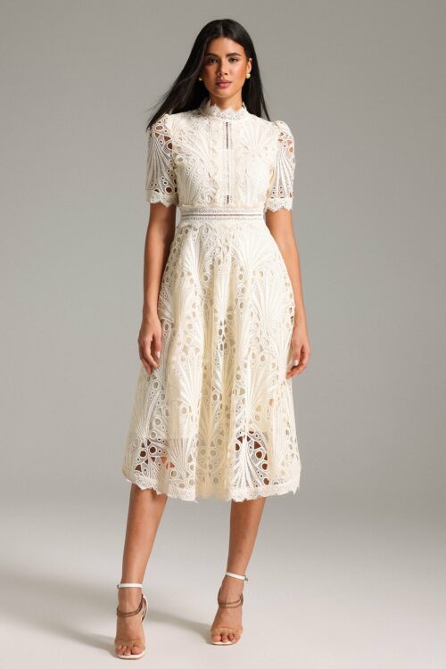 Fagaro Long Sleeves Lace Velvet Midi Dress