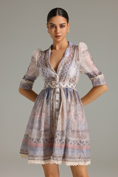 Diane Chiffon Patchwork Ruffled Design Mini Dress