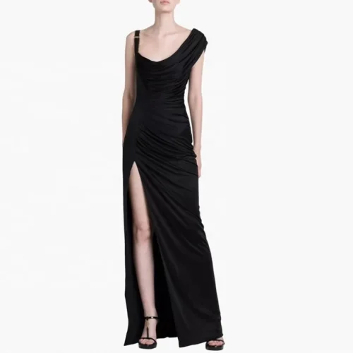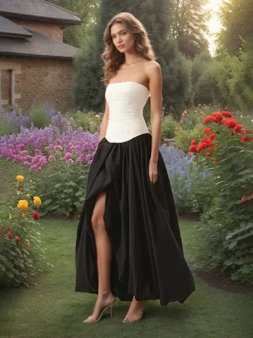 YC 2025 Spring Summer Casual Dress Women Elegant Strapless Beautiful Long High Waist Slim Pleated Split Party Irregular