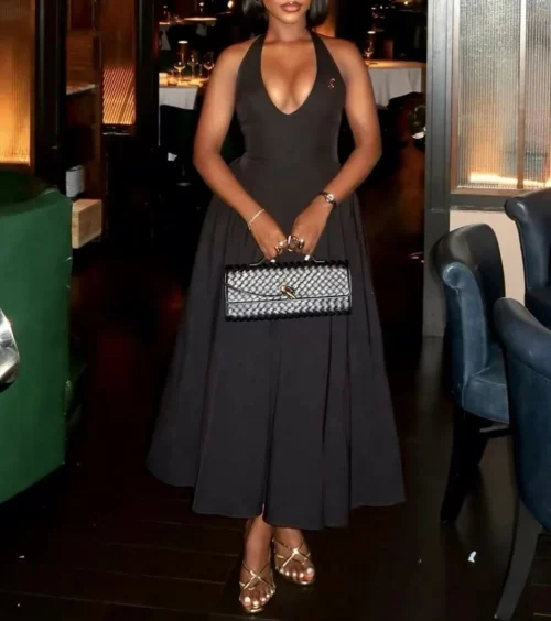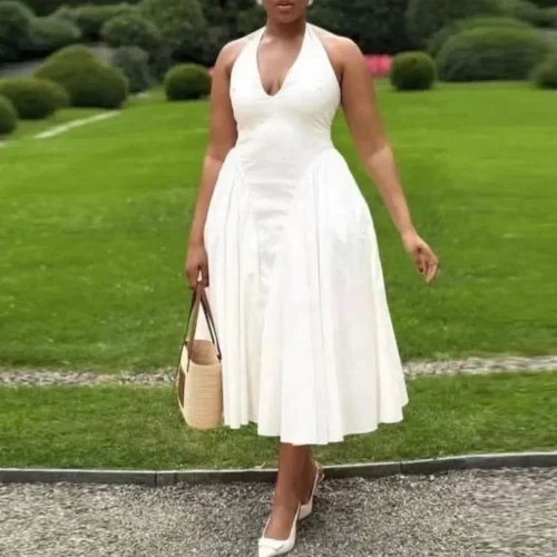 YC 2025 Spring Summer Women’s Casual Dress Sexy Fashion Sleeveless Pullover Fairy Halter Black White Party Female
