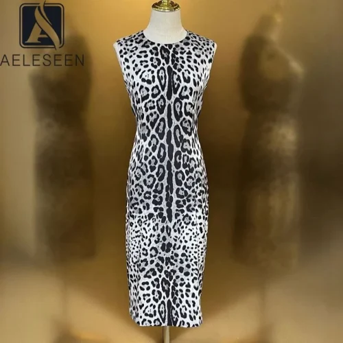 YC 100% Silk Summer Midi Dress Women Sicilian Sleeveless Slim Leopard Printed Pencil Vintage Vest Dress Female