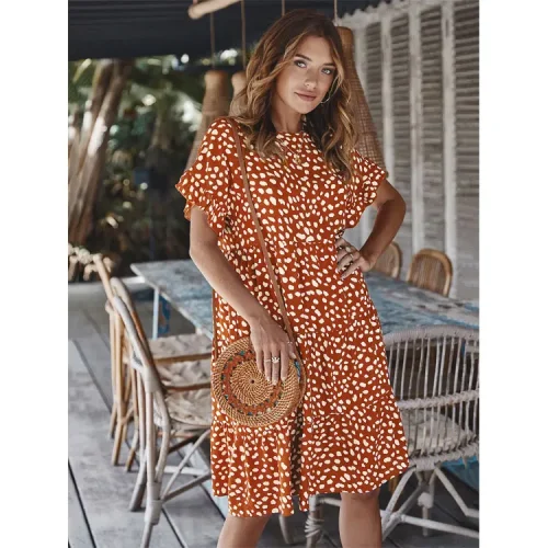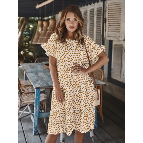 Yodo2814 Link-Z509- Dress Women Casual Dresses Lotus Sleeve Polka Dot Women Ladies Summer