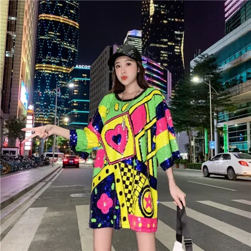 YIZHIQIU Female Clothing Sequin Summer Casual Dresses Women