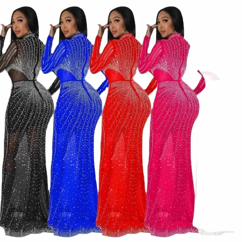Yun New Temperament Mesh Dress Fringe Sequin Evening Dress