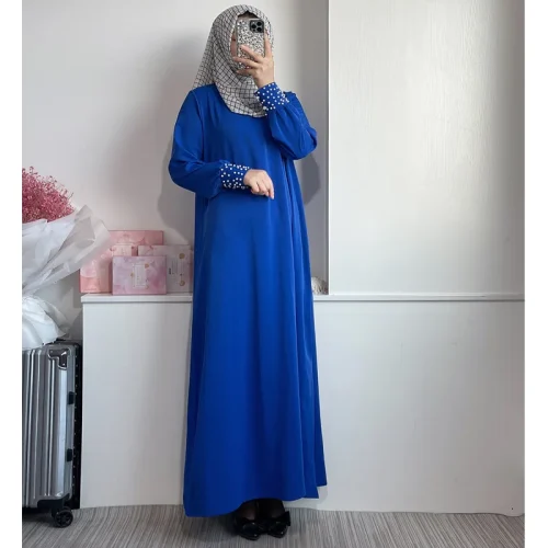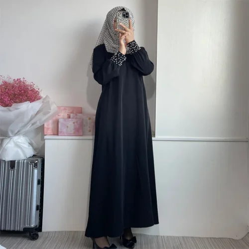 2024 New Ramadan Party Autumn Clothes New Women’s Fashion Malay Long Skirt Nailed Pearl Robe Long Sleeve Dress for Women