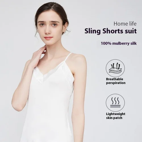 2024 New Summer High-Grade 100% Mulberry Silk Pajamas Casual Thin Sling Satin Half Women’s Home Clothes Front ODM Night Dress
