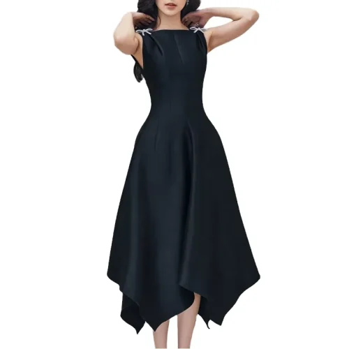 2024 New Summer Women Dress Fashion Sleeveless High Waist Irregular Ladies Formal Party Dress