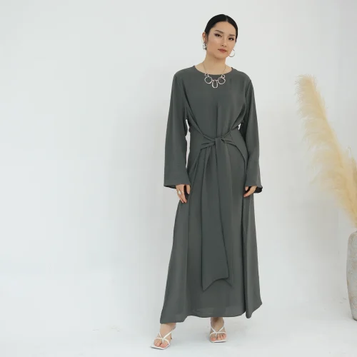 2024 New Modest Abaya Slip Dress Islamic Clothing Women Long Sleeve Wrap Dress Crepe Muslim Women Casual Dresses