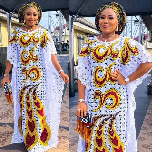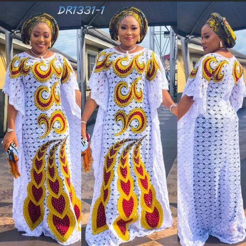 2025 Fashion African White Cord Lace Fabric Robe Party Long Dresses for Women Clothing Summer Casual Dresses Ball Gown Simple