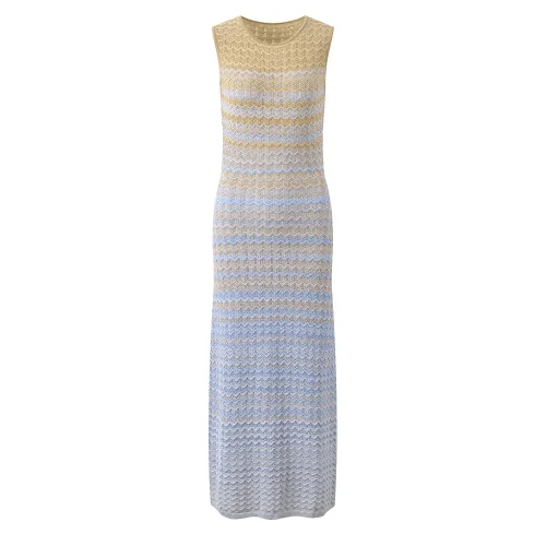 2025 French Sweet Summer Elegant Stretch Slim Round Neck Sleeveless Women’s Dress New Gradient Color Wave Striped Long Dresses