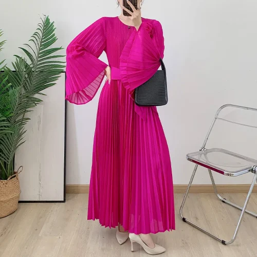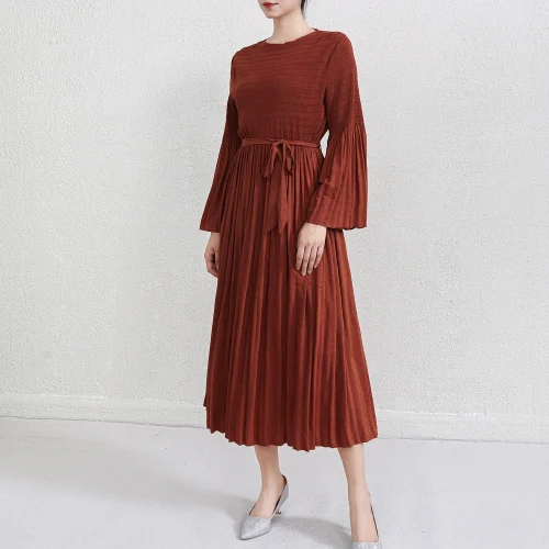 2025 New Design Dress Women Casual Pleated Dress Long Sleeve With Belt Elegant Dress Women’s Clothing Spot