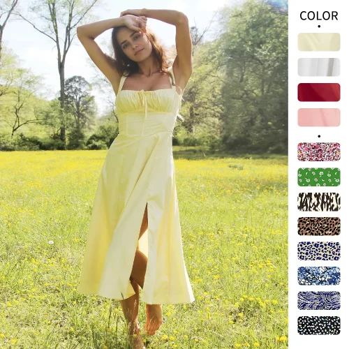 2025 Olaesa New Design Fashion Summer Casual Sleeveless French Vintage Style Spaghetti Strap A-Line Dress