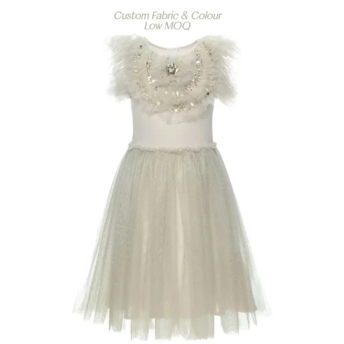 2025 High-End Designer Flying Sleeve Dress for Girls New Kids Fashion Princess Luxury Style Flower Print for Summer