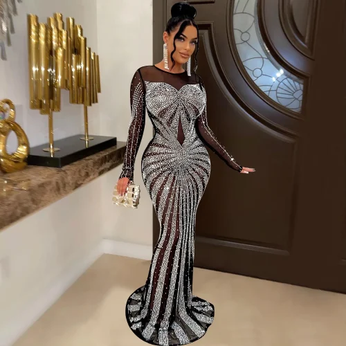 2025 New Arrivals Think S-2XL Women’s Solid Pattern Casual Dress Long Floor-Length Evening Party Clothing Plus Sizes Sexy Casual