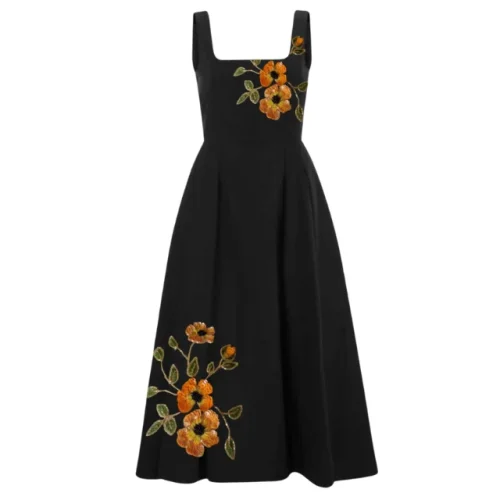 Elegant Casual Black Dress with Sequin Flowers Princess Party Long Dress for Women Manufactured by Clothing Company