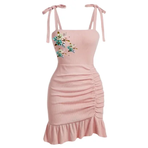 Elegant Casual Party Wear Fashionable Evening Dress With Embroidery and Frill Sleeve Top Quality Women Wear Dress