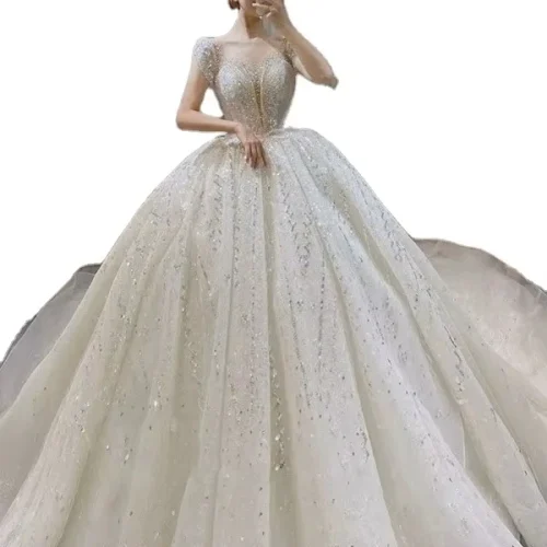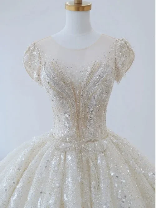 Elegant Bling Bling Sequin Beaded Princess Wedding Dresses Vestido De Noiva Luxury