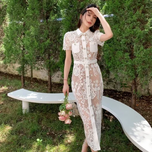 Elegant Casual Dresses for Women Breathable Fashion Styles With Sleeves for Autumn Spring Seasons With Mesh Fabric and Beaded