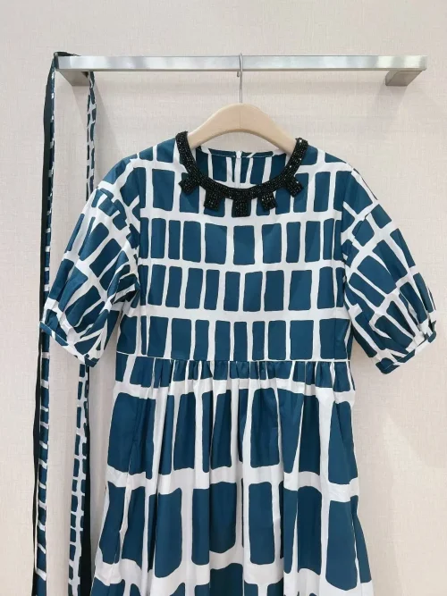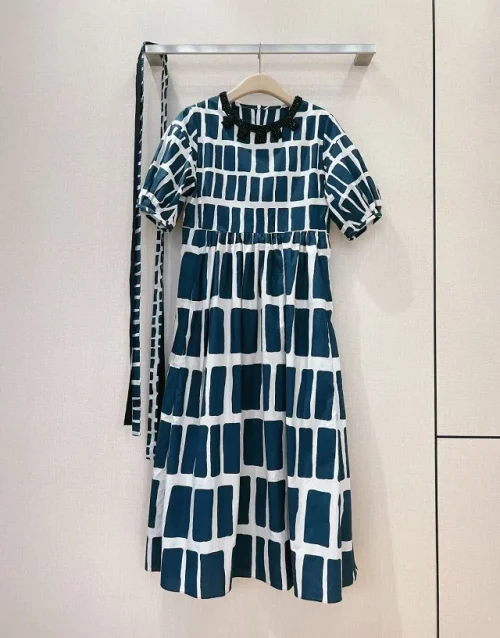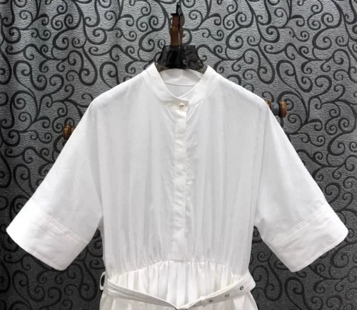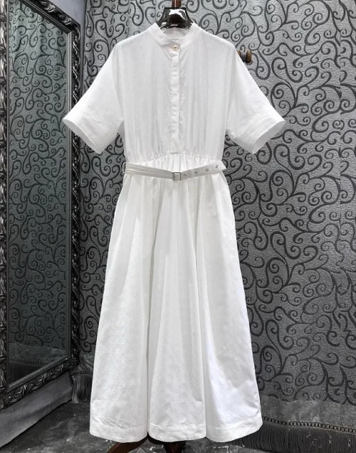 100%Cotton Long Dress 2024 Spring Summer Fashion Designer Clothing Women Belt Deco Short Sleeve White Blue Black Long Maxi Dress