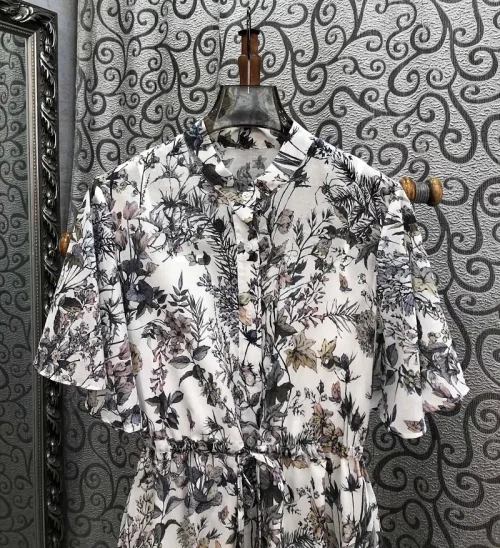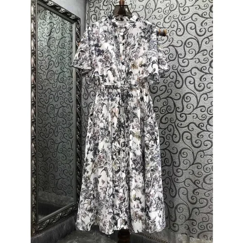 100%Cotton Dress 2025 Spring Summer Clothes Lady Vintage Floral Print Drawstring Waist Short Sleeve Casual Party Dress Gorgeous