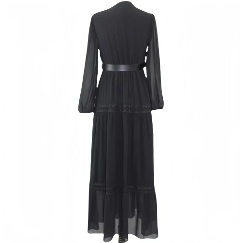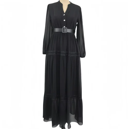 Elegant Vintage Lace Patchwork Maxi Dress Chiffon Long Sleeve Chiffon Casual Dress
