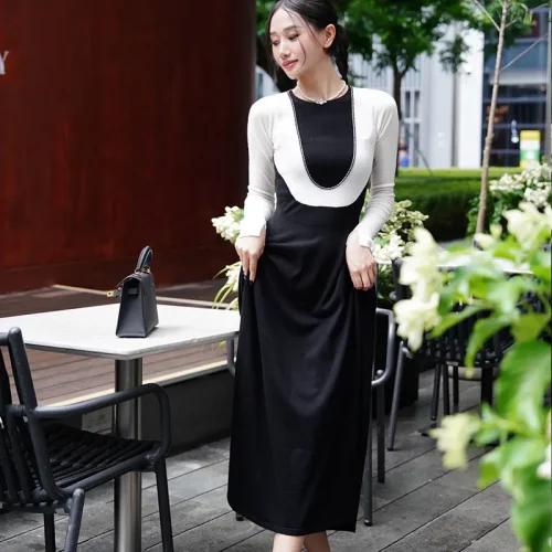 Elegant Vintage Dresses for Women Casual Bodycon Style Knitted Weaving Fashion Autumn Maxi Dress