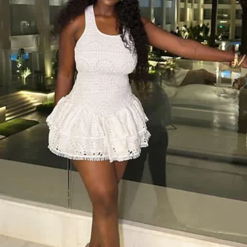 GX80336 Luxury Quality Lady 2024 Street Wear Sexy Square Neck Sleeveless A-line Ruffled Mini Dress Tight Elegant Party Dresses