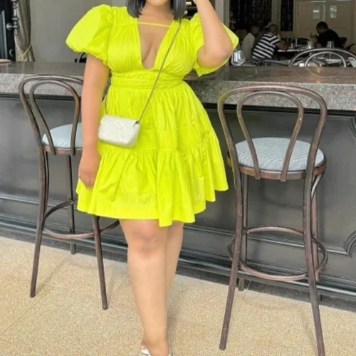 GX5068 High Quality Fashion V-Neck Puff Short Sleeve A-line Mini Dress Women Summer Clothing Elegant Party Evening Dresses