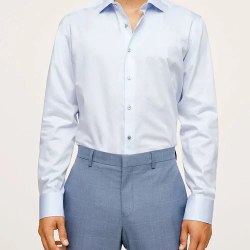 10037-T-Embroidery No Iron Business Mens Button Down Long Sleeve Cotton White Casual Shirts