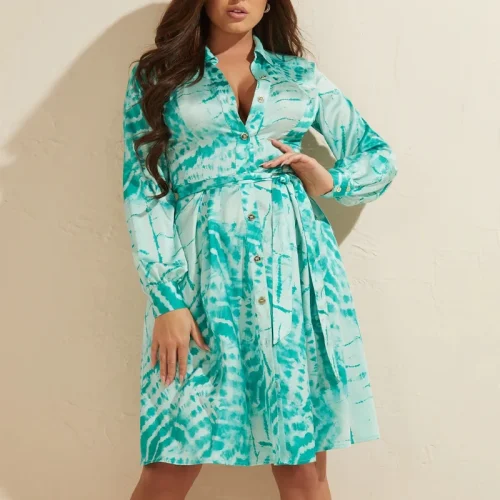10172-T-Clothing Shirt Dresses Women Casual Batik Dress Women Long Sleeves Mini Dress
