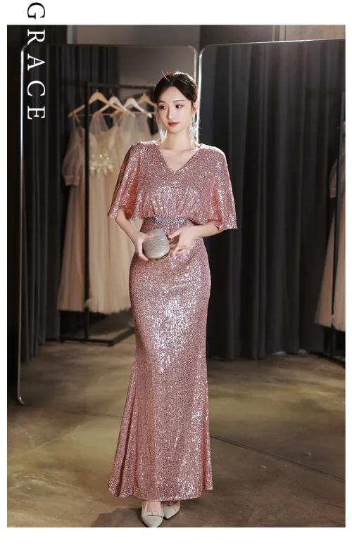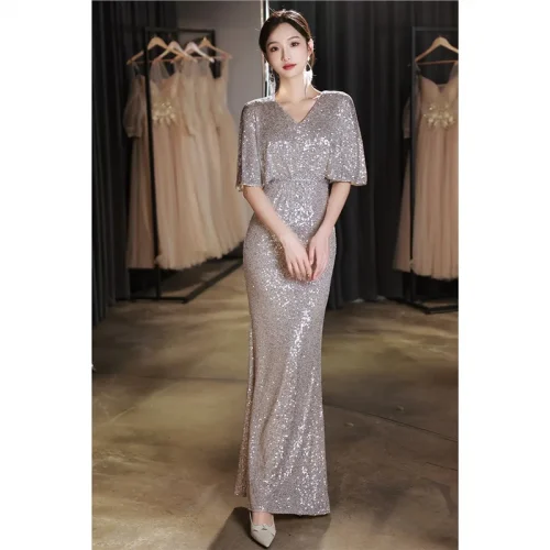Women’s 2025 Evening Trumpet Dress Sexy Mesh Patchwork Perspective Beaded Cloak Sleeve Party Banquet Spring Summer