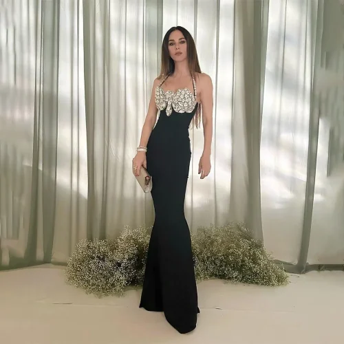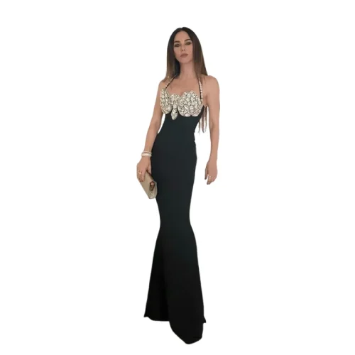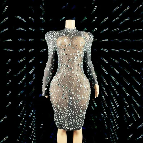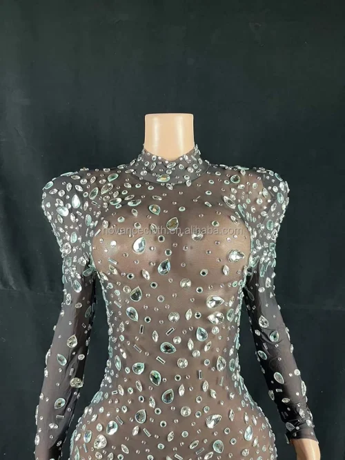 Women Y2201-B New Technologies Clothes Women Dazzling Diamond Black Sheer Dress Mother of the Bride Dresses Ceremony Party