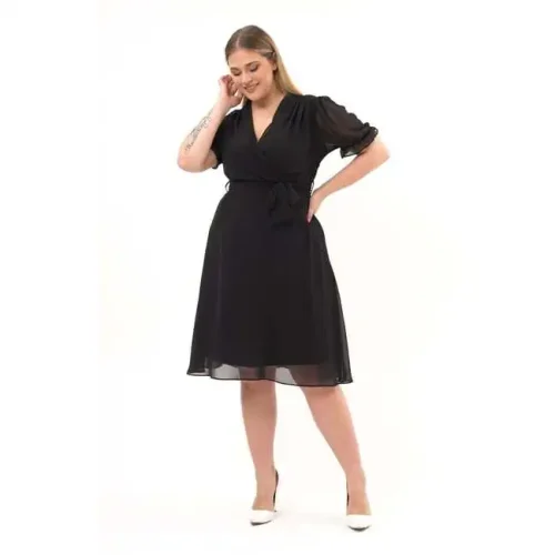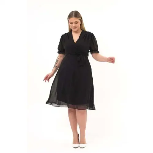 Women’s Double Breasted Midi Length Chiffon Dress Plus Size Polyester Belted Style 4255/110 Premium Quality Stylish Trendy Sexy Casual Wear