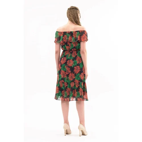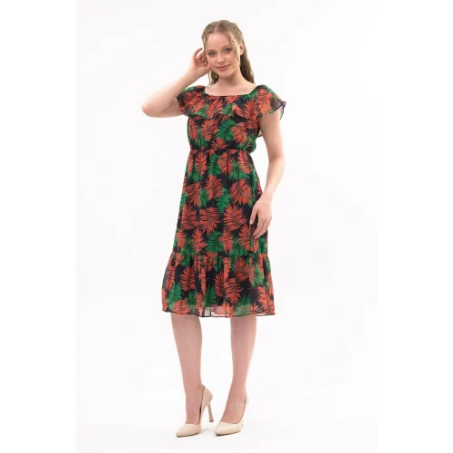 Women’s Elegant Bohemian Midi Chiffon Dress Madonna Collar Floral Patterned Y2K Digital Satin 4448/115 Sexy Casual Wear
