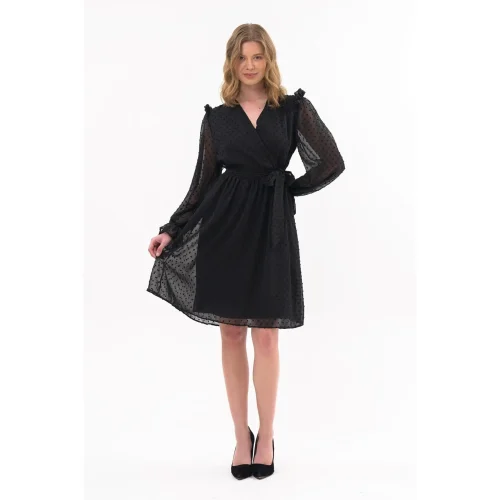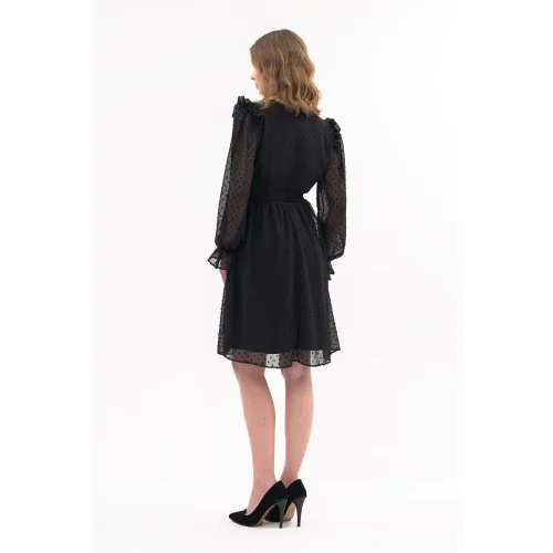 Women’s New Season Double-breasted Collar Tulle Dress with Belt Tie Detail 4295/100 Manufacturer in Turkey Sexy Casual Wear