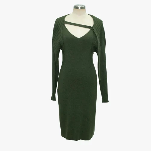 Women’s ODM Summer Autumn Bodycon Midi Dress Sexy V-Neck Halter with Spaghetti Straps Casual Solid Pattern Maxi Knit Dress