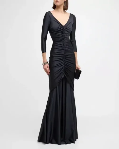 Women’s New Casual Solid Dresses v Neck Long Sleeve Slim Basic Bodycon Evening Dress