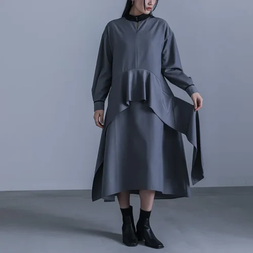 Women’s Mode Fashionable Maxi Dress Long Sleeve Dress Stand Neck Length High Neck Different Material Suit Fabric for Casual Wear