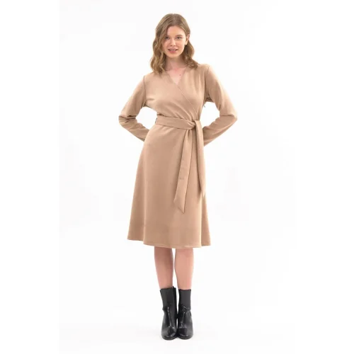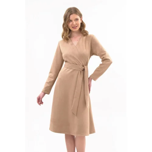 Women’s Suede Belted Double Breasted Collar Detailed Flared Midi Length Winter Dress 4407/110 Sexy Casual Wear