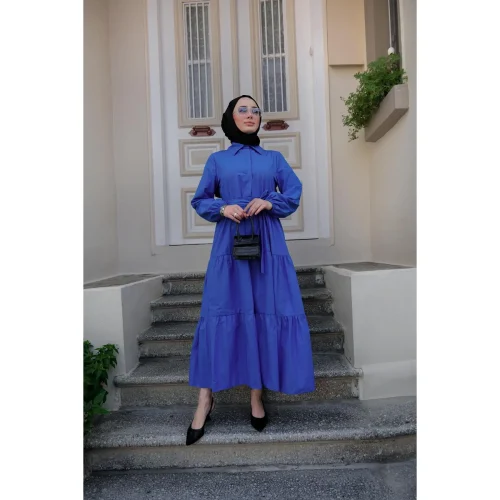 Women’s Waist Tied Layered Hijab Dress Saks Blue