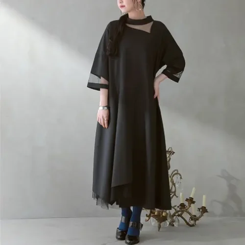 Women’s XL Size Free Size Stand-Up Party Dresses Casual Black Dresses for 10s 20s 30s 40s 50s 60s Covering Chubby Body