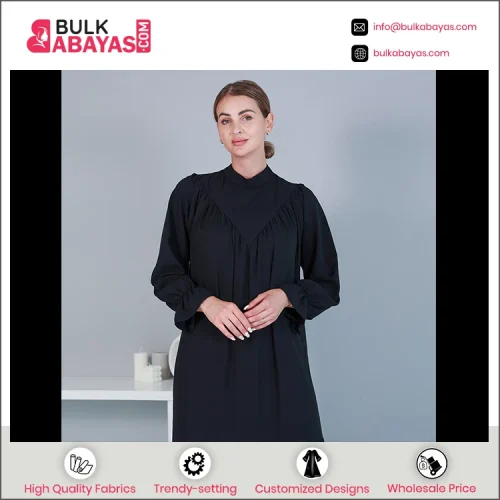 World’s Best Indian Manufacturer of Top Quality Muslim Dress Black Color Abaya with Pleated Work on Front and Back