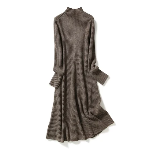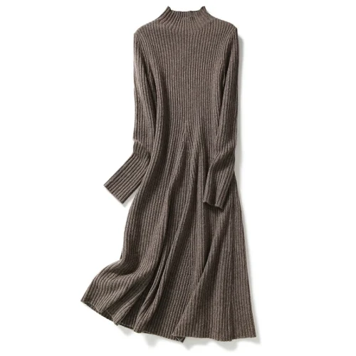 Wool Cashmere Rib Knitting Chunky Long Sweater Skirt Dress Women Winter Muslim Long Dress.