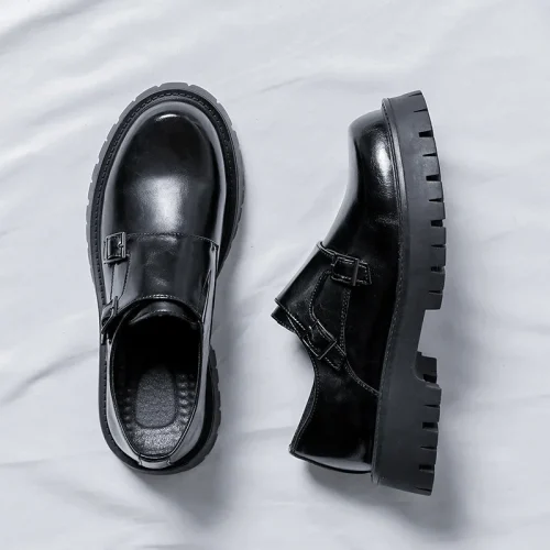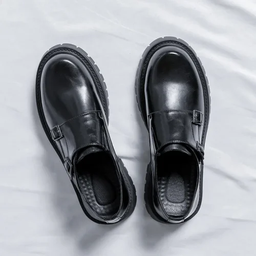 Work in Office Height Increasing Buckle Monk Strap Genuine Leather Green Dress Shoes Men