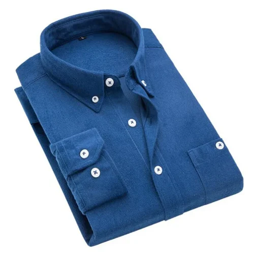 XH06 Autumn Corduroy Men Shirt Casual Solid Color Slim Fit Long Sleeve Corduroy