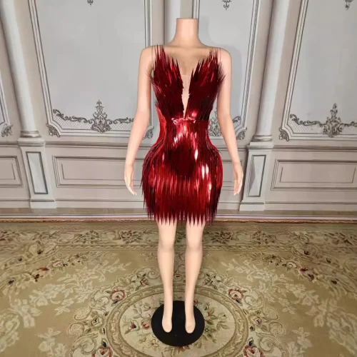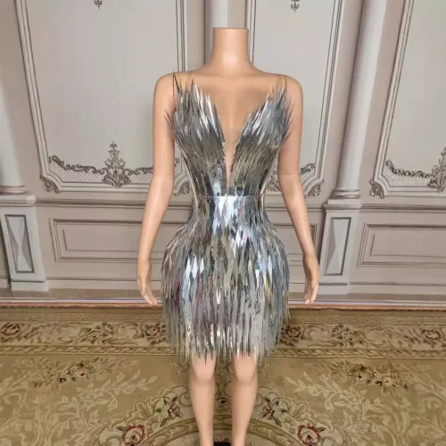 WY21 Beauty Pageant Nightclub Bar Pointed Strip Deep V Dress Stage Party Evening Skirt