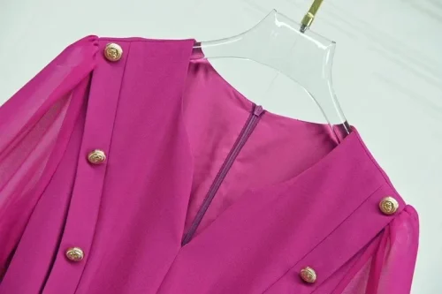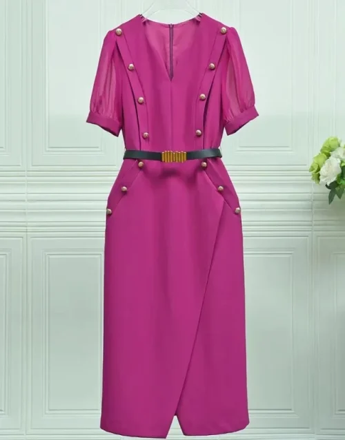 XXL Bodycon Dress 2024 Spring Summer Fashion Design Vestido Women V-Neck Big Button Belt Deco Short Sleeve Pink Black Dress OL