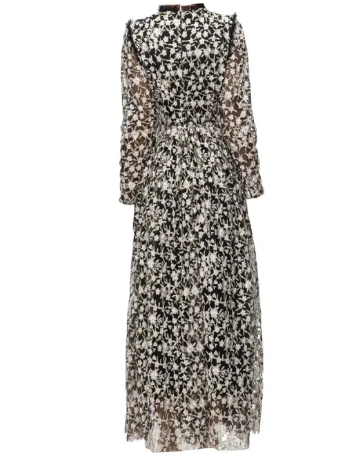 XXL Long Dress 2024 Spring Autumn Party Evening Women V-Neck Allover Exquisite Embroidery Long Sleeve Vintage Maxi Dress Mesh
