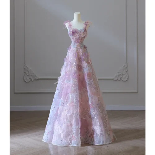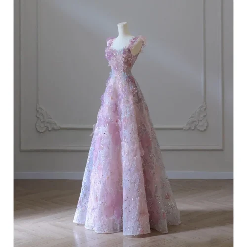 XS-5XL Shiny Flower Evening Dress Mesh 3D Flower Dress Sleeveless Long Dress Directly