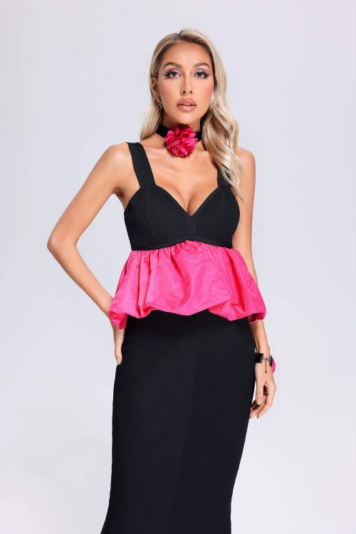 Makala Flower Fishtail Maxi Bandage Dress